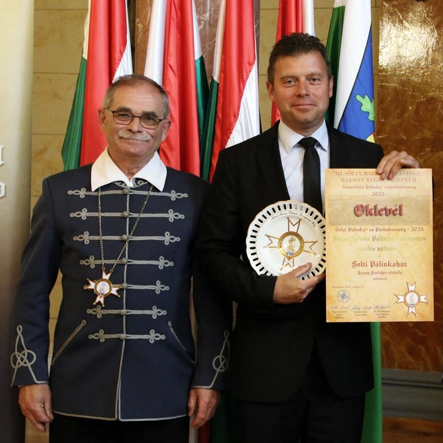 Munkájával, a Herendi Porcelánmanufaktúra Zrt. Egyedi, sorszámozott, igen értékes különdíját, valamint „A Szent István Pálinka Lovagrend Sóly zászlós pálinkája” címet nyerte el Kovács János a Solti Páinkaház tulajdonosa, aki Bács-Kiskun legöregebb páinkafőzdéjét, „pálinka-alkotóműhelyét” irányítja.